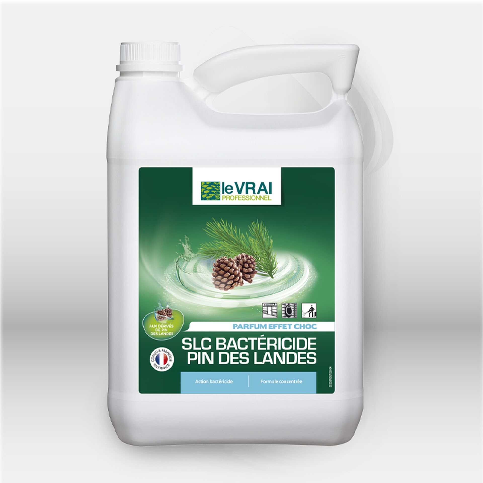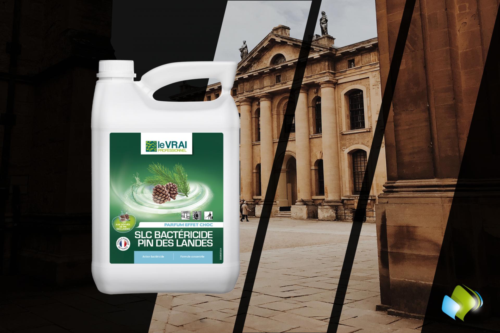 Désinfectant, désodorisant et bactéricide de la marque Le Vrai Professionnel. Vendu par bidon de 5L et sent le pin des landes pour un nettoyage complet.