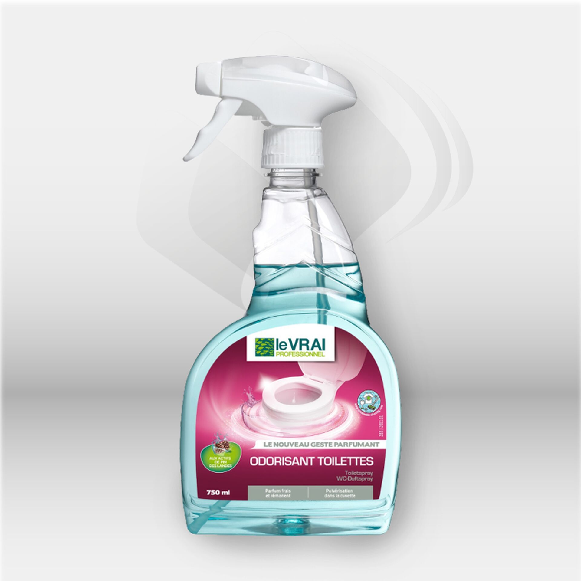 Odorisant toilette en 750 ml de la marque Le Vrai Professionnel. Destiné pour parfumer les WC, en laissant une odeur fraîche et agréable.